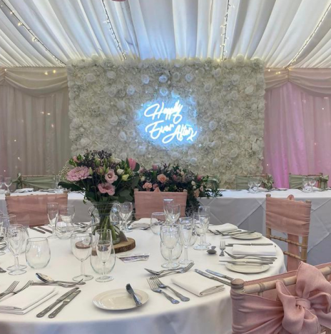 The flower wall is completely freestanding and versatile so it can be placed anywhere in your venue including behind your top table, backdrop for your ceremony behind registrars table, or used as a stunning setting for some of your group/individual photographs or a sweet/gift table.