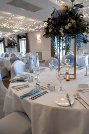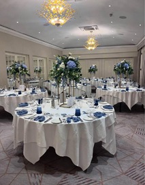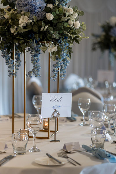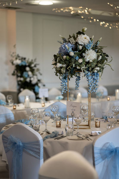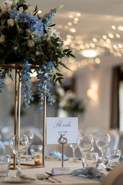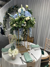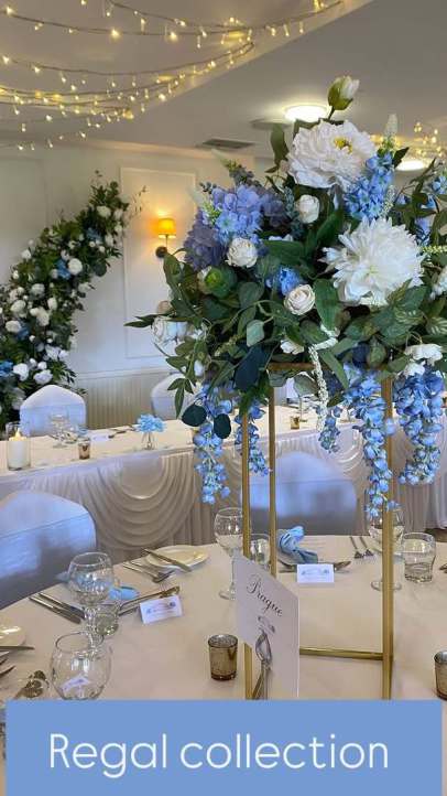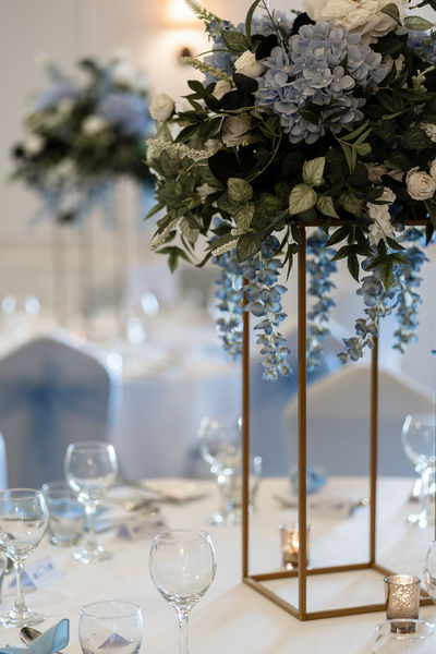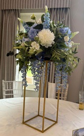 40cm Regal Bue Floral Toppers on gold rectangular frames - £40.00 to hire.