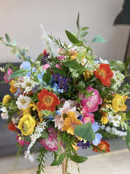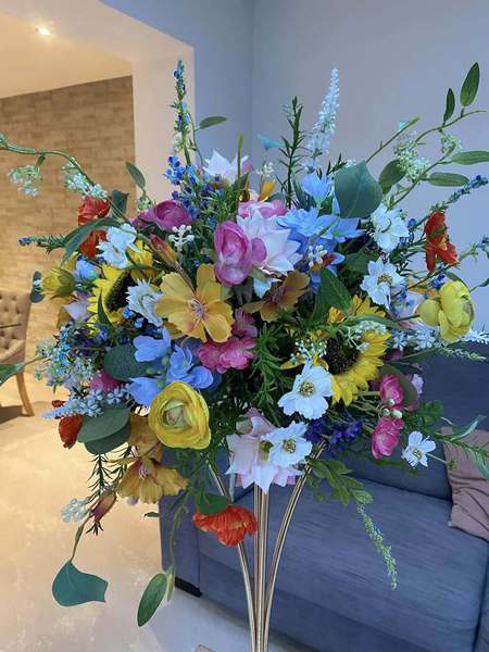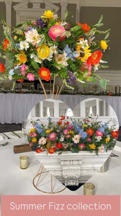 40cm Summer Fizz Floral Toppers these can be placed on our 70cm or 50cm hourglass frame - £35.00 to hire.