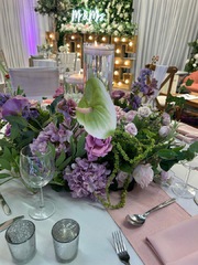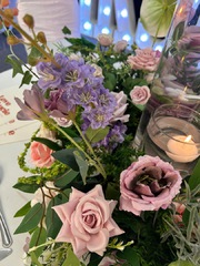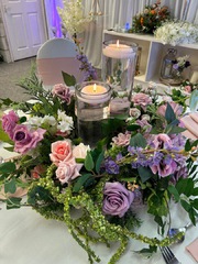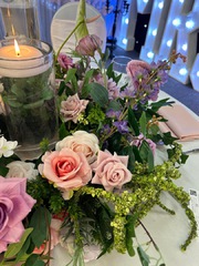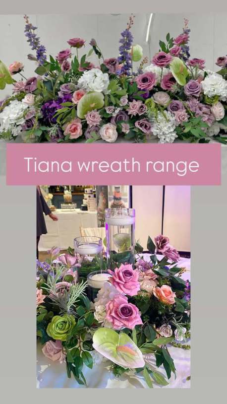 40cm Tiana wreaths with trio of cylinder vases filled with water and finished with floating candles - £35.00 to hire