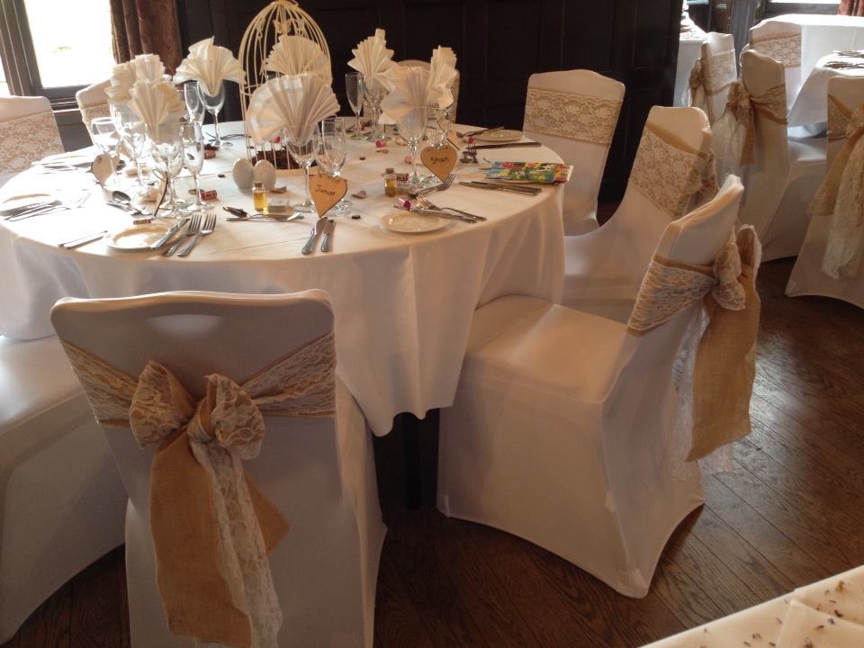 We have a vast collection of chaircovers available in white, ivory and black. We also stock both organza, satin, Linen and chiffon sashes along with matching table runners in a variety of colours with hire pricing starting from just £3.