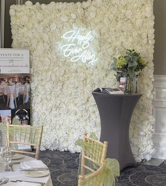 Happily Ever After Neon Sign (requires power) looks fab hung from our copper frame or our cream flower wall. A great feature for photos or to welcome your guests.